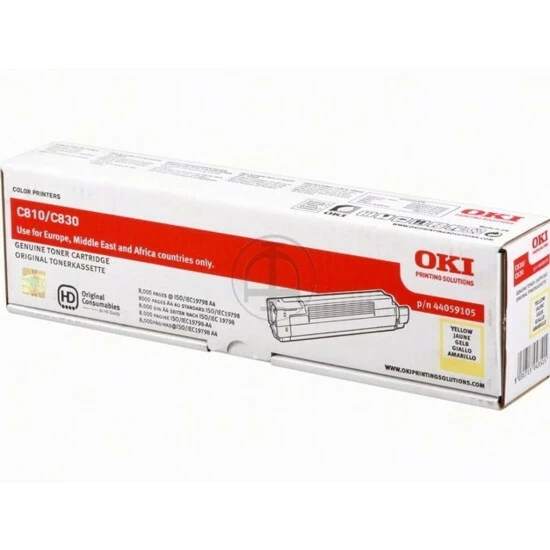 Toner Oki C810 (44059105) – toner, yellow (gelb). Farbe: Gelb. Kapazität: 8000 Seiten.