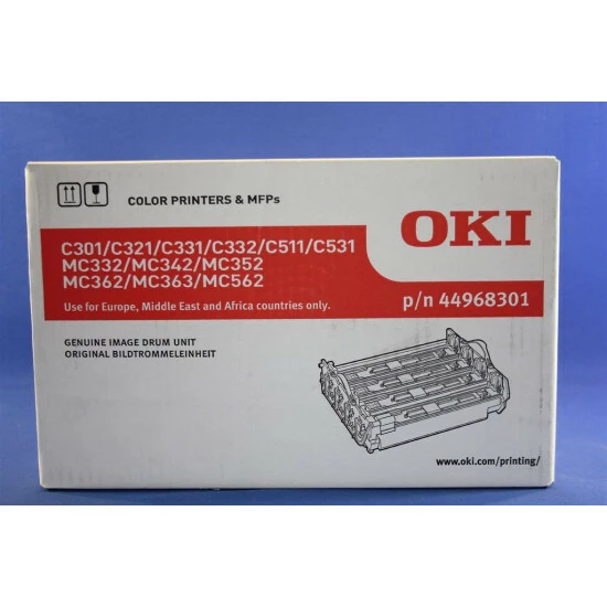 OKI 44968301 Trommel. Typ: original. Kapazität: 30.000 Seiten. Unsere original OKI 44968301 Trommel ersetzt die Trommeleinheit 44968301 Ihres OKI Druckers. Das Drum Kit hat eine Seitenkapazität von ca. 30.000 Seiten (Herstellerangabe bei ca. 5% Deckung). 0,43 Cent.